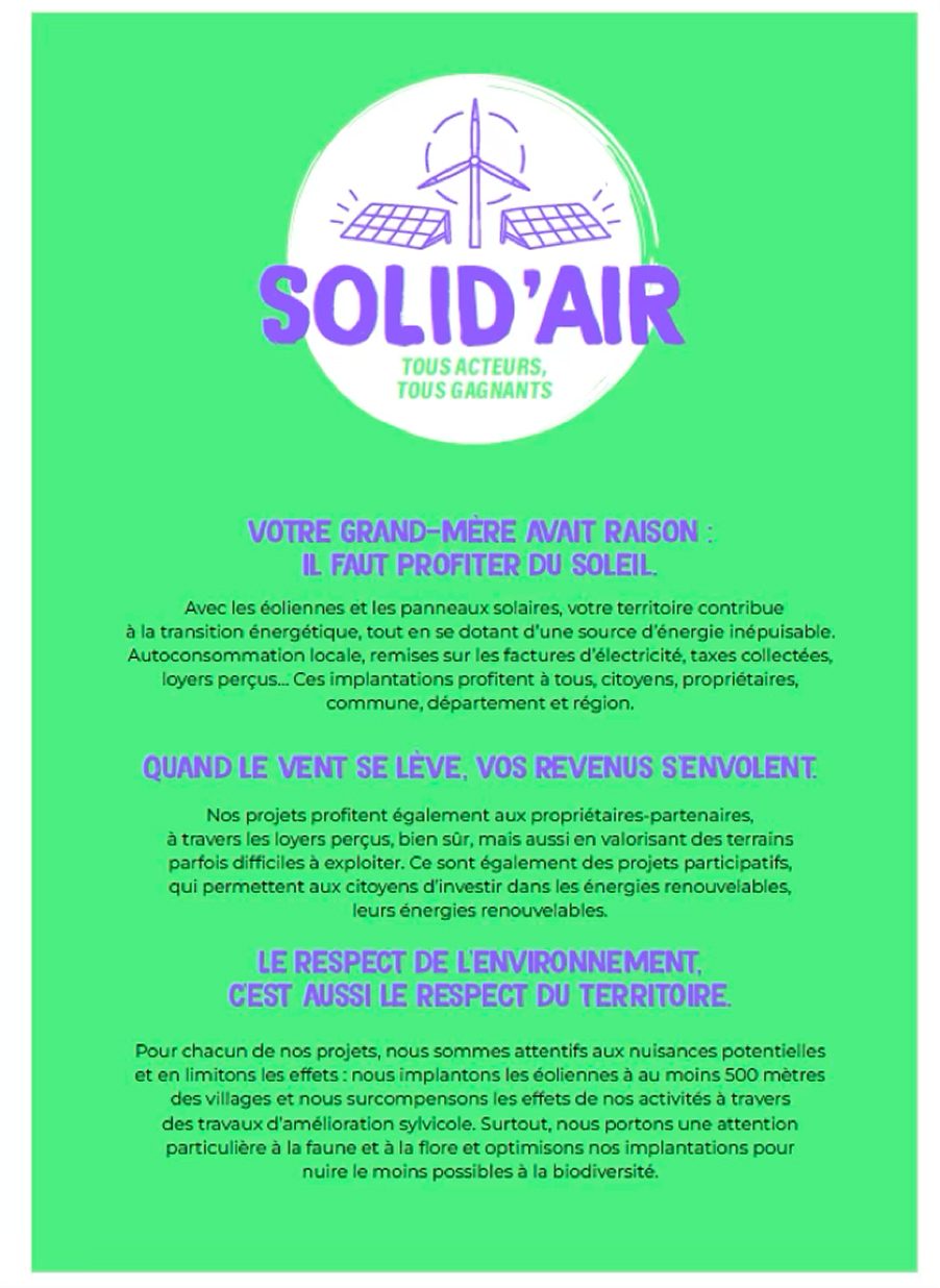 Le dispositif Solid’Air permet aux habitants de s’approprier les projets ENR qui se développent dans leur territoire.